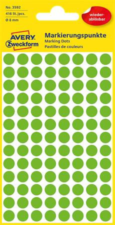 Etikett, 8 mm, kör, eltávolítható, AVERY ZWECKFORM, fűzöld, 416 etikett/csomag