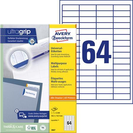Etikett, univerzális, 48,5x16,9 mm, AVERY ZWECKFORM, 6400 etikett/csomag
